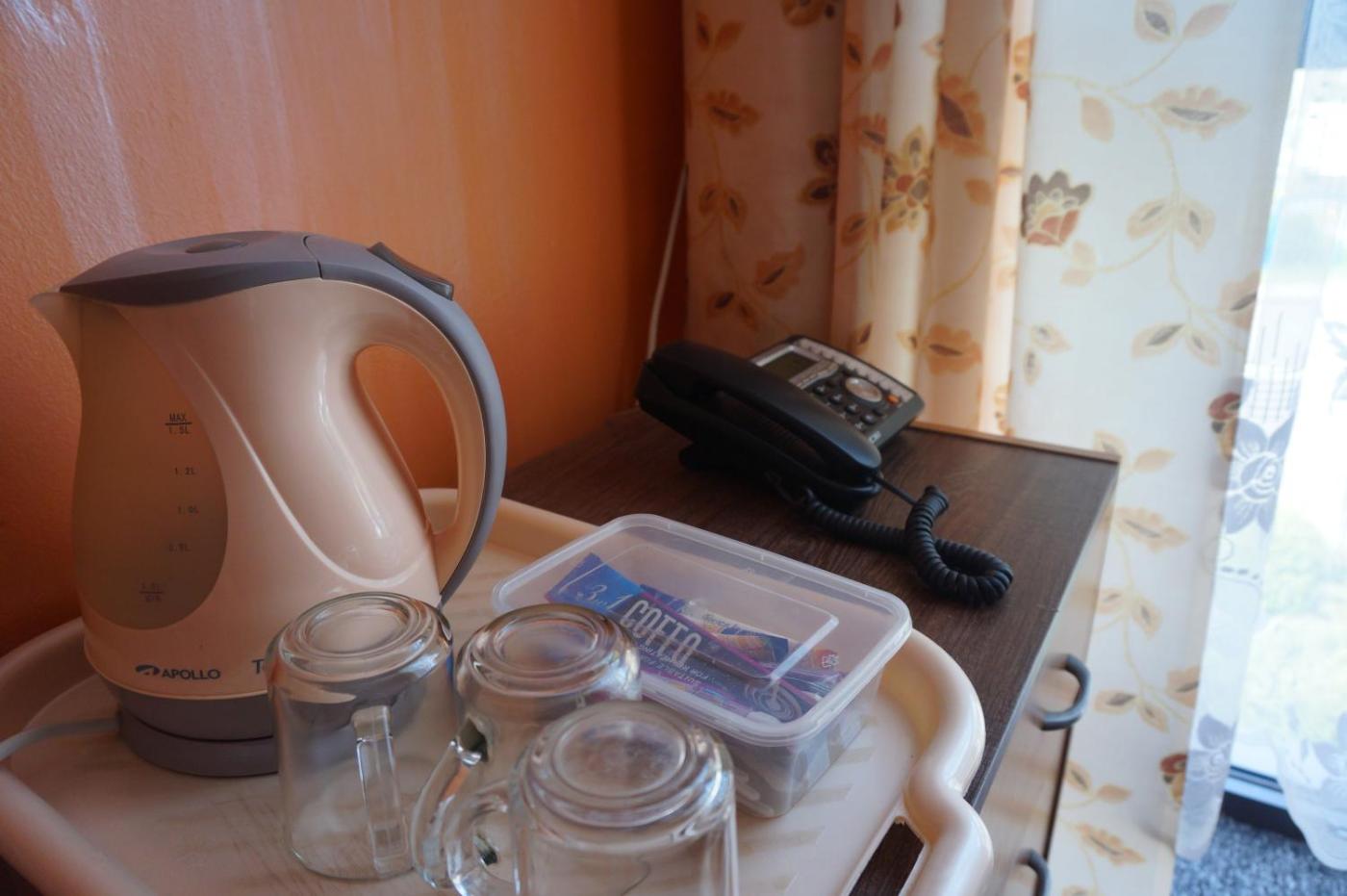 Pokój z 2 łóżkami pojedynczymi i prywatną łazienką. The twin room features heating, as well as a private bathroom featuring a walk-in shower. The twin room offers a tea and coffee maker, a wardrobe, a carpeted floor, a flat-screen TV with satellite channels, as well as city views. The unit offers 2 beds. Pokój z 2 łóżkami pojedynczymi - 2 osobowy. Powierzchnia pokoju ok.: 17 mkw. ;
